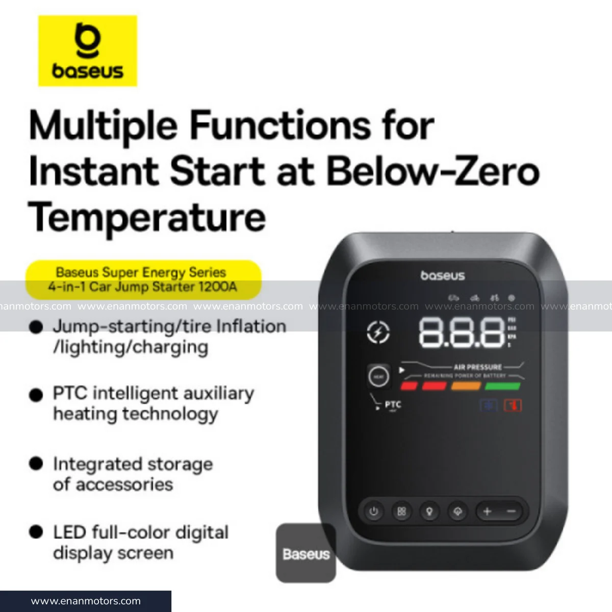 The Baseus Primetrip Series Super Energy 4-in-1 Car Jump Starter is a practical and reliable roadside companion, combining power, convenience, and safety tools in one smart device designed for modern drivers.